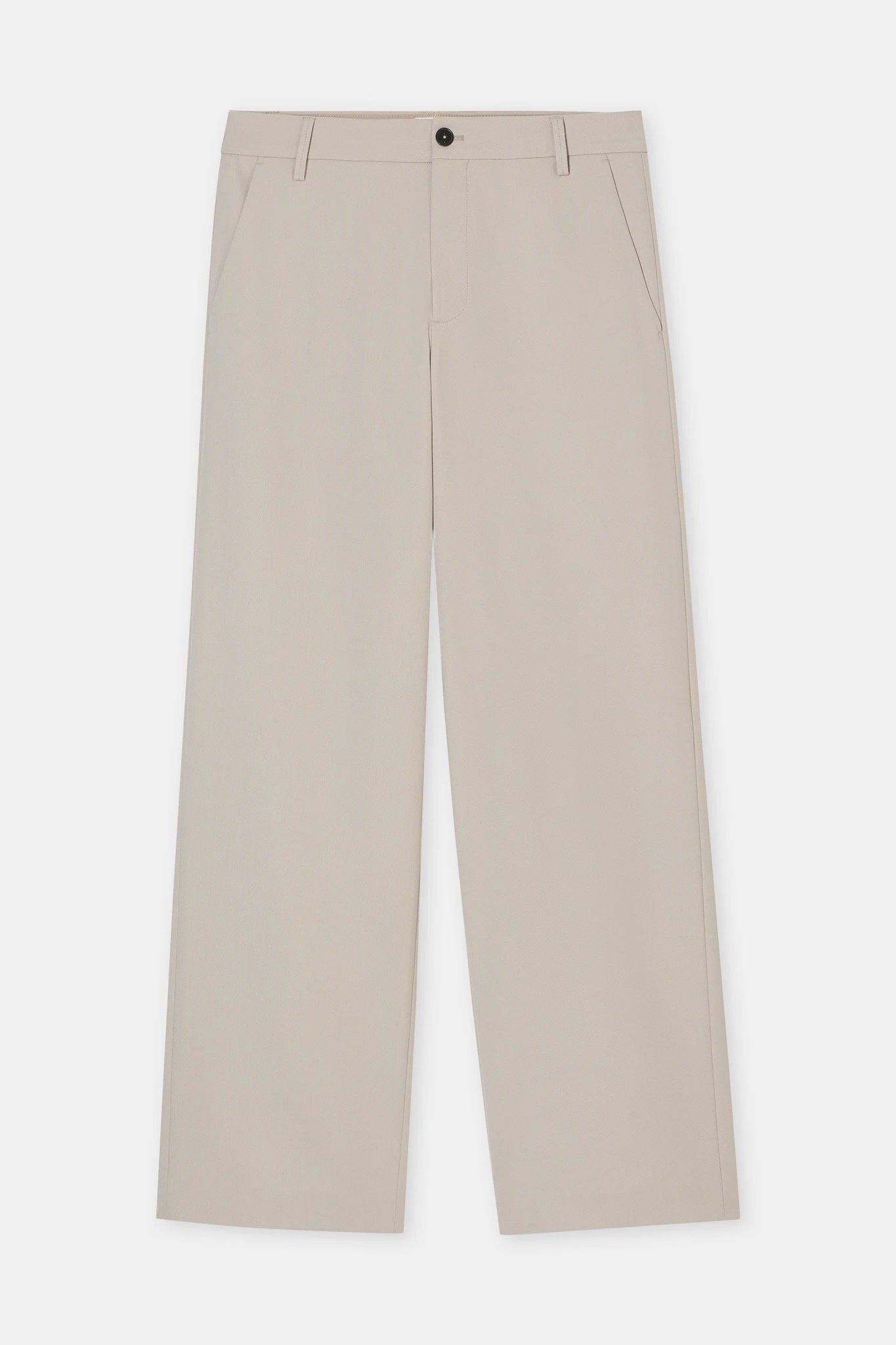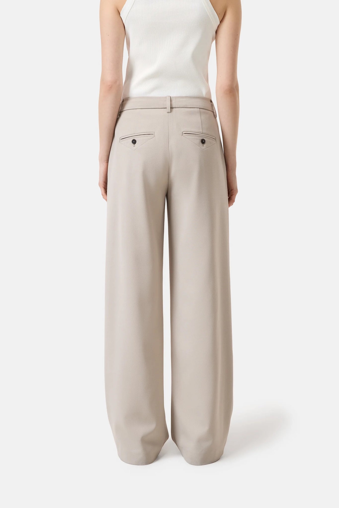 Our wide leg Jurdy pants have a medium waist and are long cut. Made from an elastic wool blend twill and then piece dyed for a rich colour finish. With clean waistband, buttoned welt pockets with decorative quilting at the back and particularly high-quality interior processing. Made in Romania.