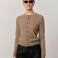 Introducing the Roselle Knit Cardigan: A classic knitted cardigan featuring a button closure in the front.
