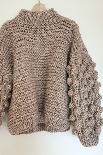 Kiro by Kim Turtle Neck Bubbles Sleeved Sweater Dark Sand