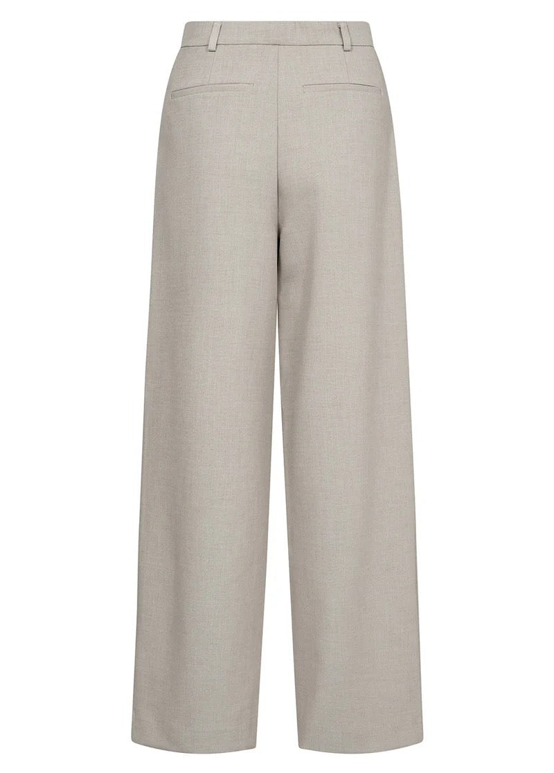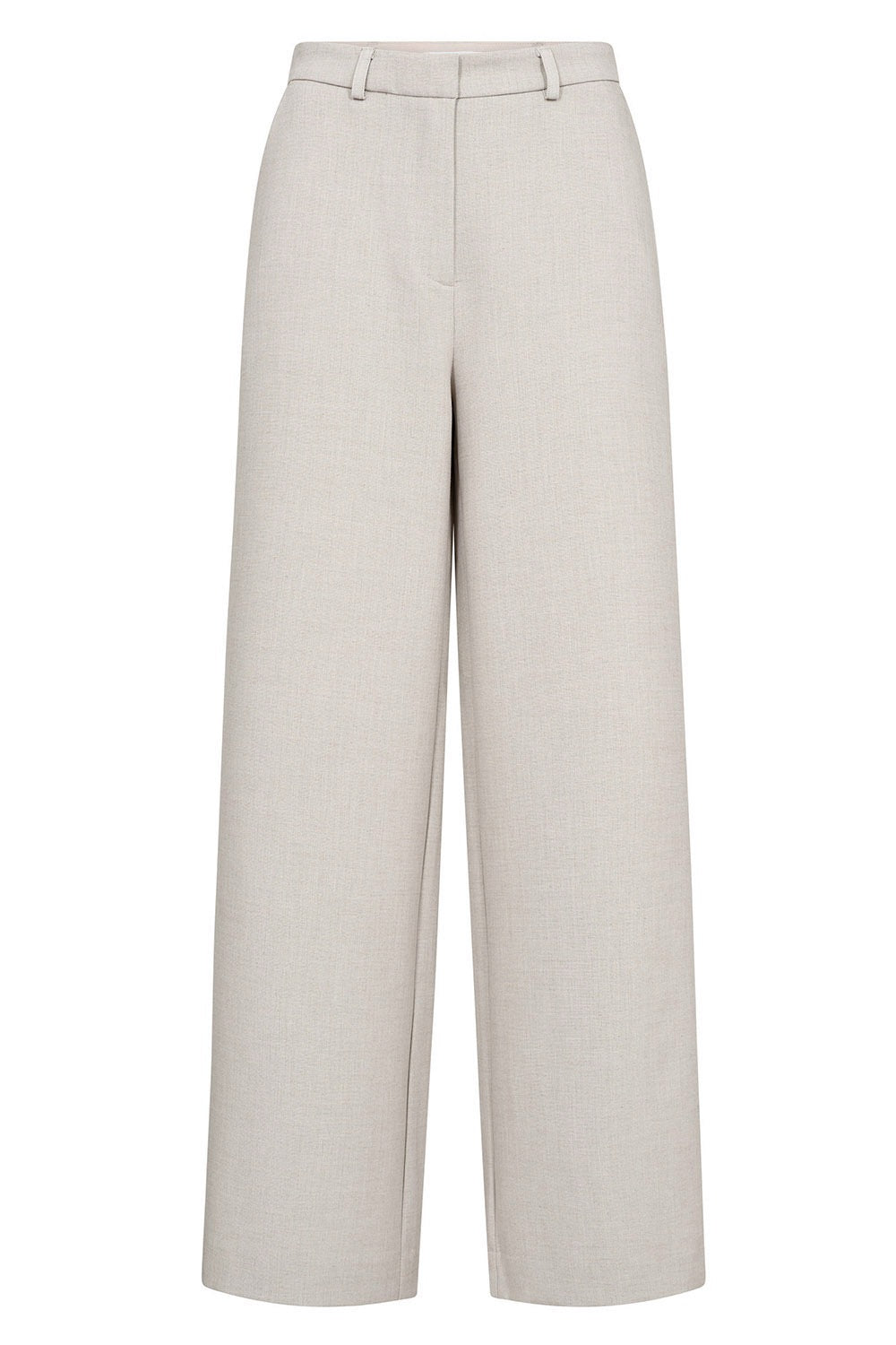 The Co'couture MavaCC LL Pant in Bone is a stylish pants with a timeless look and a modern, wide fit. These pants in a soft sand color are finished with a high waist, subtle belt loops and a tight blind closure for a minimalist silhouette. The straight, wide model ensures an elegant fall and makes it a versatile item that can be worn both for business and casual.