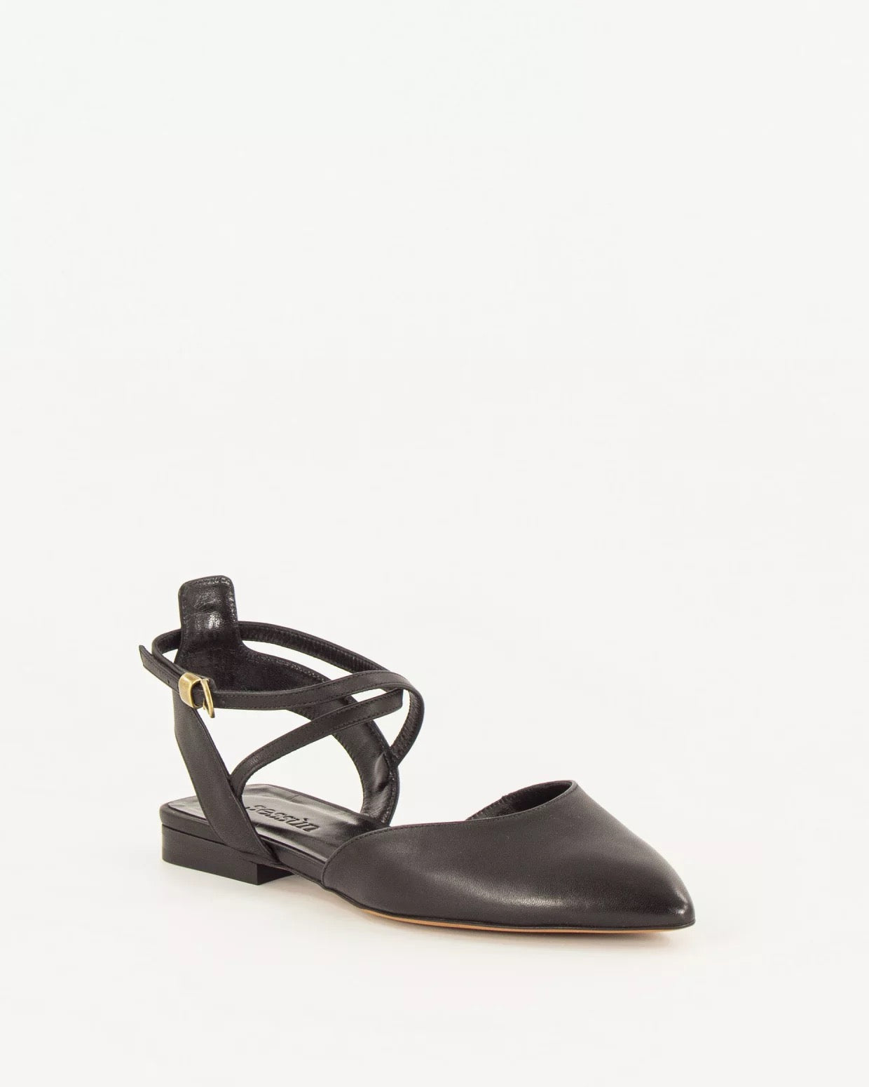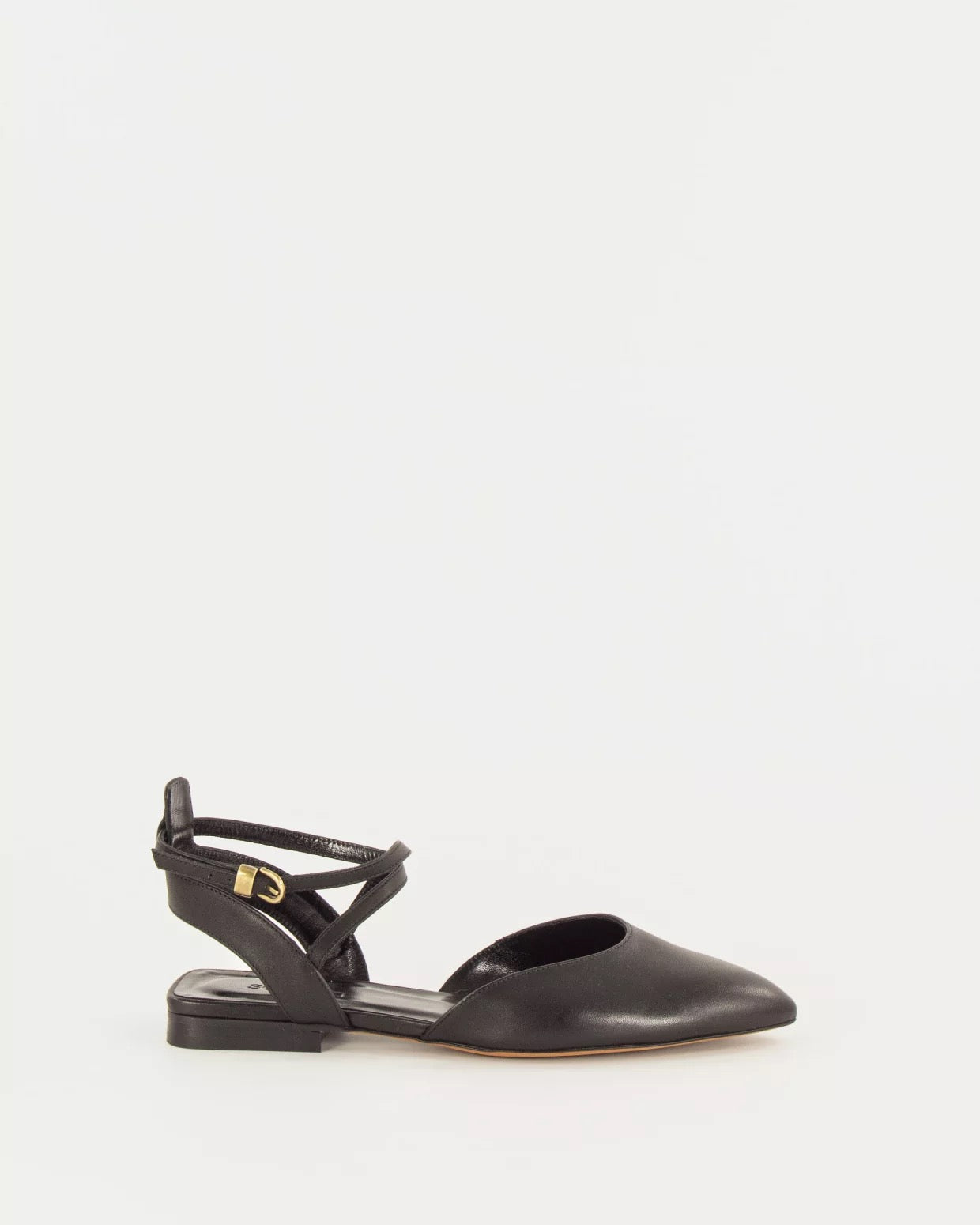 Slingback ballet flats with a pointed toe and crossed straps in cowhide, crafted in Portugal.
